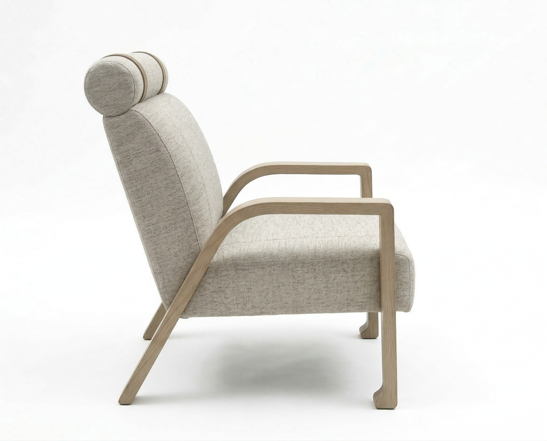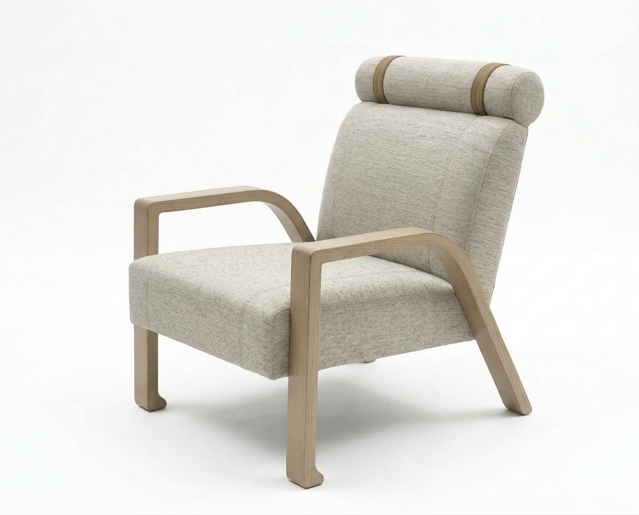 Beige armchair with wooden frame