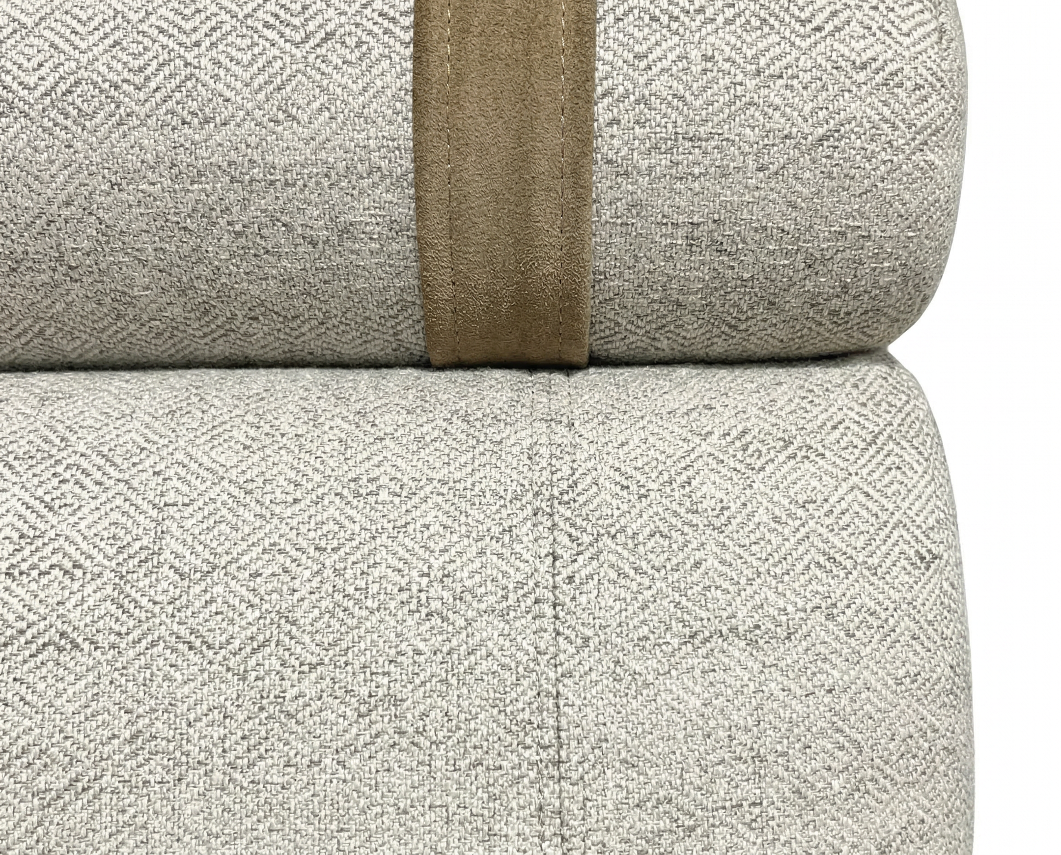 • Beige armchair with wooden frame