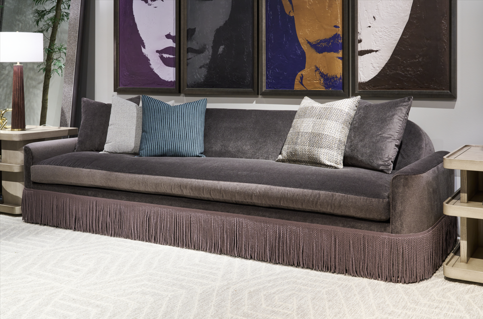 The Abigail Sofa is a sophisticated, low-profile piece accompanied with rounded arms and back.